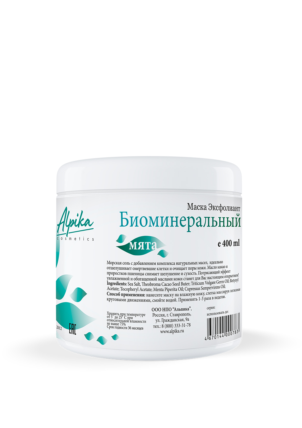 Маска эксфолиант Биоминеральный Мята, 400мл