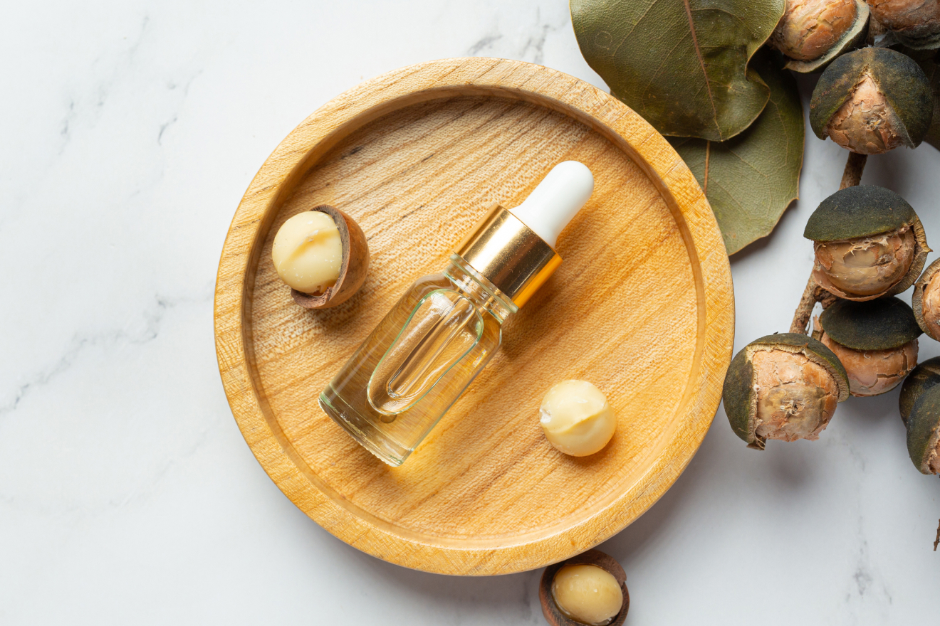 -Масло макадамии содержит омега-9, витамины группы В, витамины F, P, которые обеспечивают мощную подпитку и ускоряют выработку коллагена и эластина, нормализуют микроциркуляцию, повышают тургор и тонус тканей.